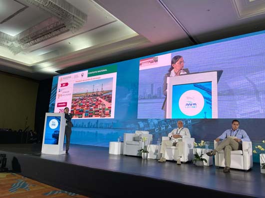 Lázaro Cárdenas, Mich., diciembre 3, 2021.- Celeste Gutiérrez Valdovinos, subgerente de Planeación y Desarrollo de a Administración del Sistema Portuario Nacional (Asipona) Lázaro Cárdenas, fue la encargada de ofrecer una amplia exposición de las ventajas que ofrece el Puerto de Lázaro Cárdenas para el comercio internacional y su trascendente importancia dentro del sistema portuario nacional y en el contexto mundial ante el 29 Congreso Latinoamericano de Puertos, organizado por la Asociación Americana de Autoridades Portuarias (AAPA) Latino, celebrado en Cartagena, Colombia.